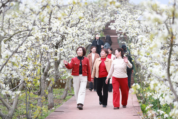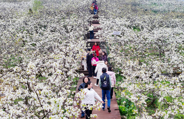 单说明 | 3月15日,游客在成都市彭州市葛仙山镇熙玉村的梨园赏花游玩。 |