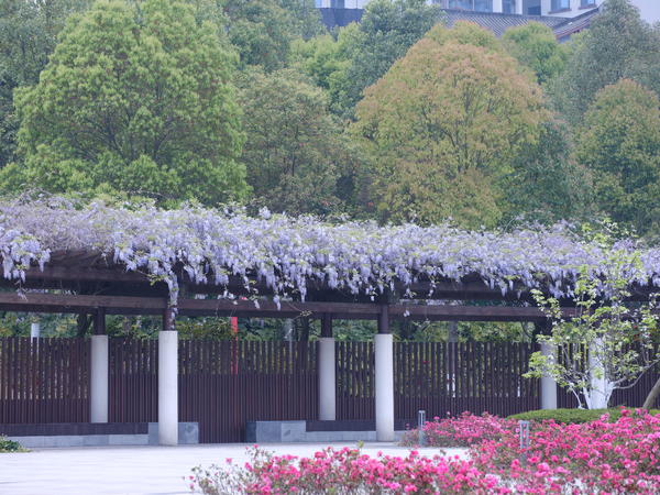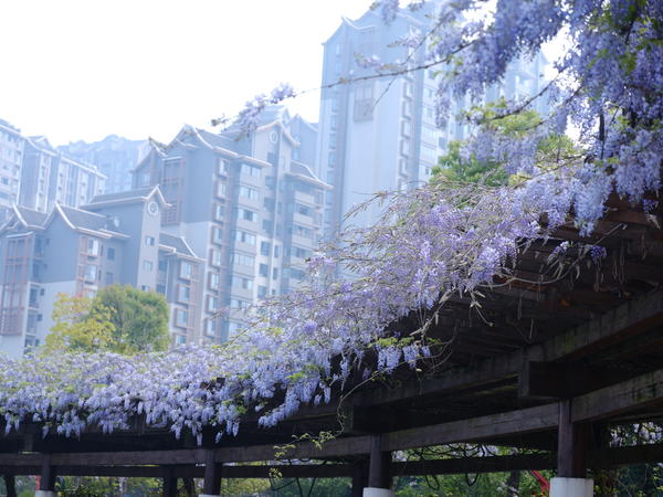 2026年3月19日,眉山市东坡区清影路紫藤花盛开,视觉盛宴。