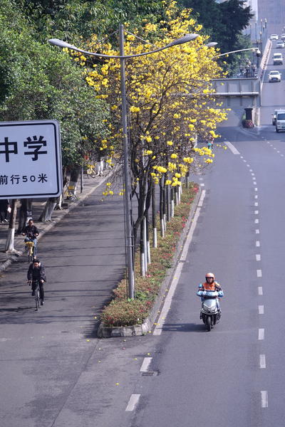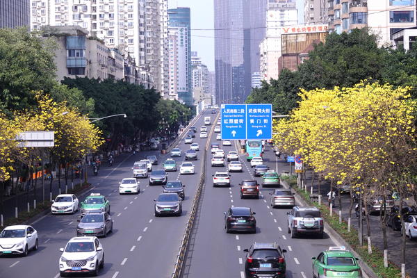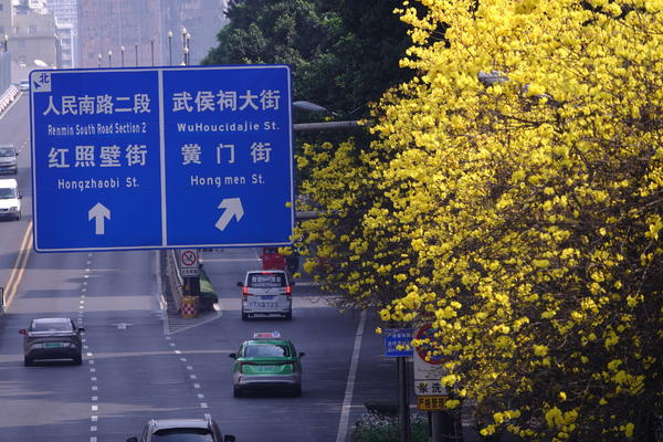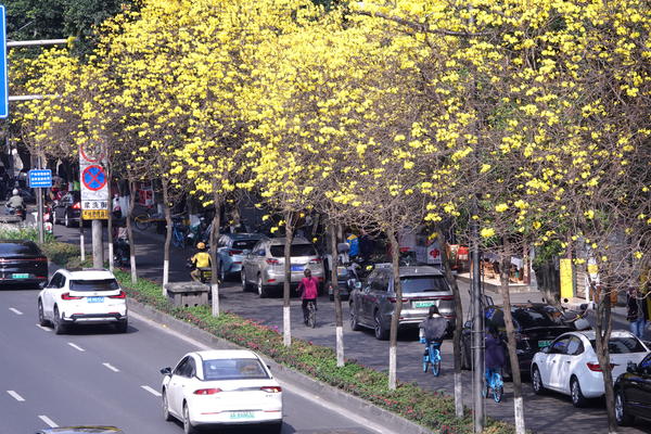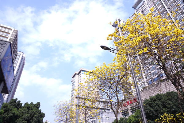 成都武侯区:浆洗街的黄花风铃木进入盛花期