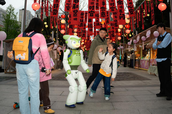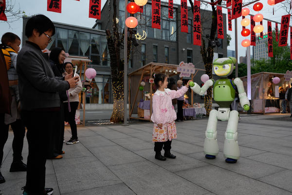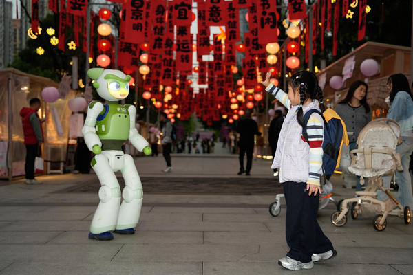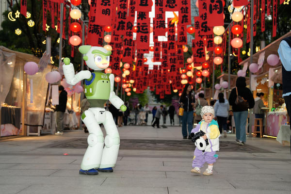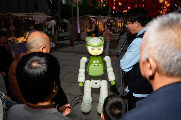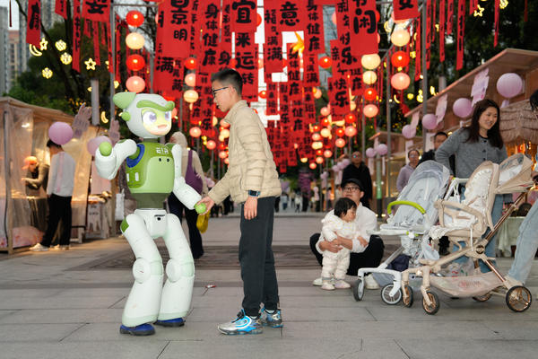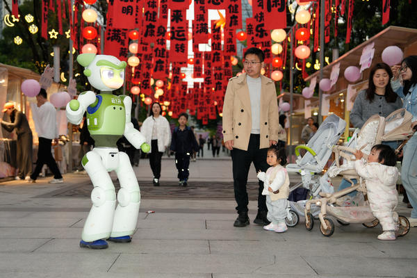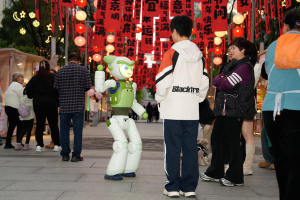 总说明 | 2026年3月29日,在成都高新区铁像寺水街,成都造情感陪伴人形机器人“爱湫”亮相“村糖会”高新分会场活动现场,吸引众多目光。 |