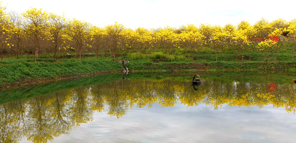 标题 | 成都金堂县:4万余株黄花风铃木盛开 |