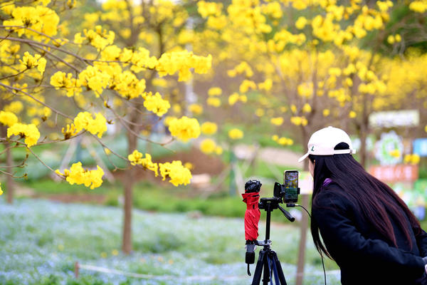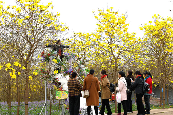 单说明 | 2026年3月30日,在黄花风铃木景区打卡拍照的游客。 |