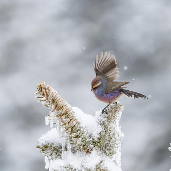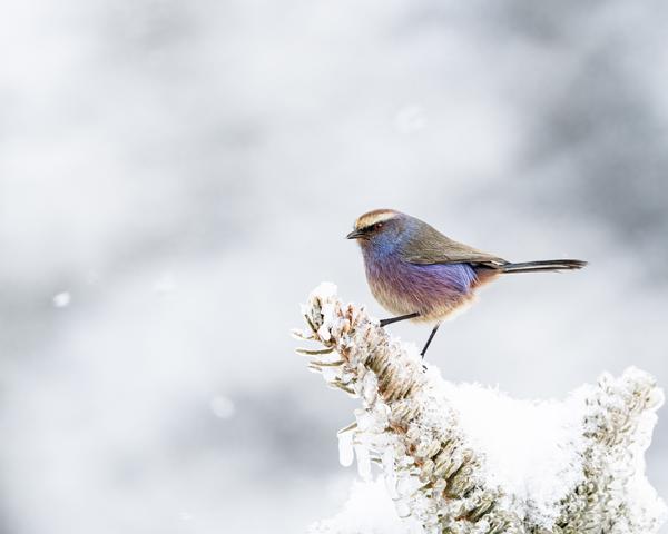 雪中的花彩雀莺