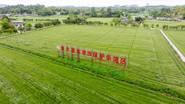 总说明 | 3月30日,四川天府新区成都直管区籍田街道,自勤农机专业合作社旁(地处成都平原的籍田街道清华村周边),无人机正在施肥撒药。2016年回乡种粮以来,理事长苏烈带领合作社在成都直管区籍田街道流转土地4000多亩。2024年,合作社2000亩田块纳入全省首批“吨粮田”建设试点范围。去年,试点田块实现亩产1073公斤,首次站上每亩年产一吨粮的台阶。 |