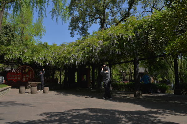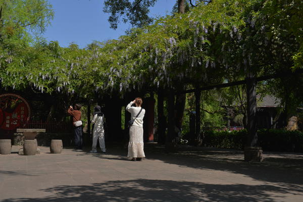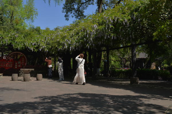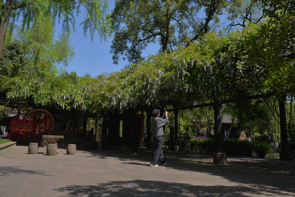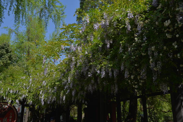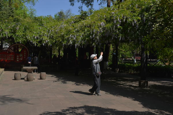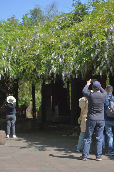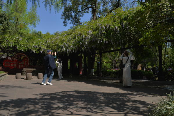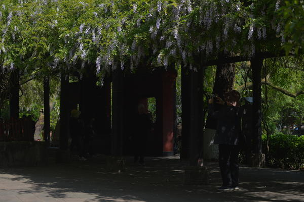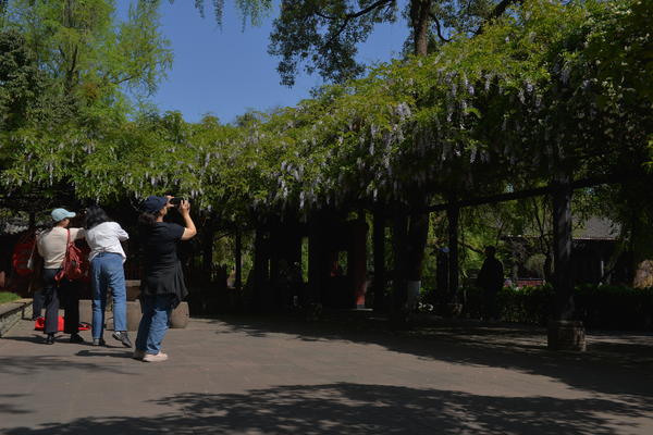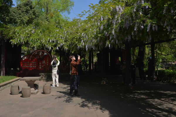 2026年3月31日拍摄的成都市新都区桂湖公园百年紫藤盛开。