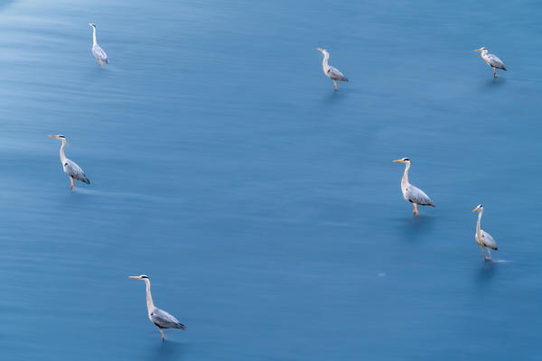 2026年3月24日,九眼桥“洗脚鸟”打卡地,一群苍鹭捉鱼忙。