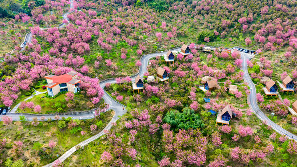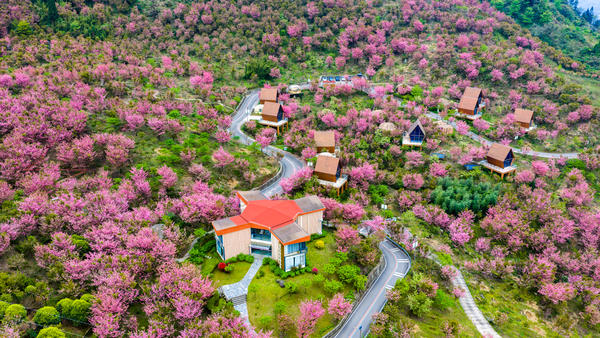 单说明 | 2026年4月5日,位于阿坝州汶川县漩口镇赵公村的赵公福地景区樱花盛开,春色如画。 |