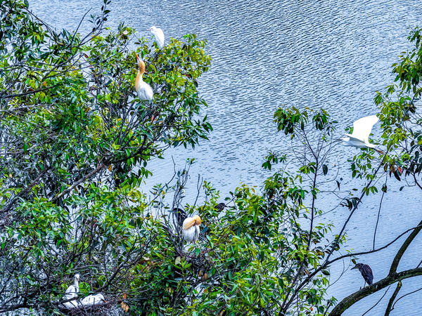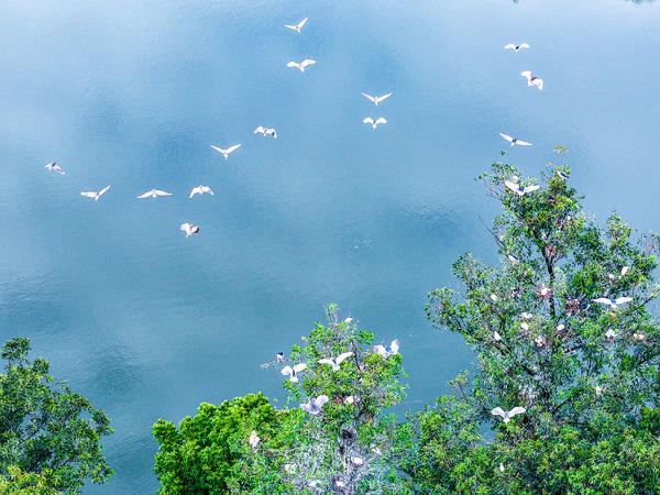 单说明 | 2026年4月20日,谷雨节气,在四川宜宾叙州区赵场街道冠英社区,春日湖畔林木葱郁,成群牛背鹭在枝头栖息、筑巢、嬉戏。 |